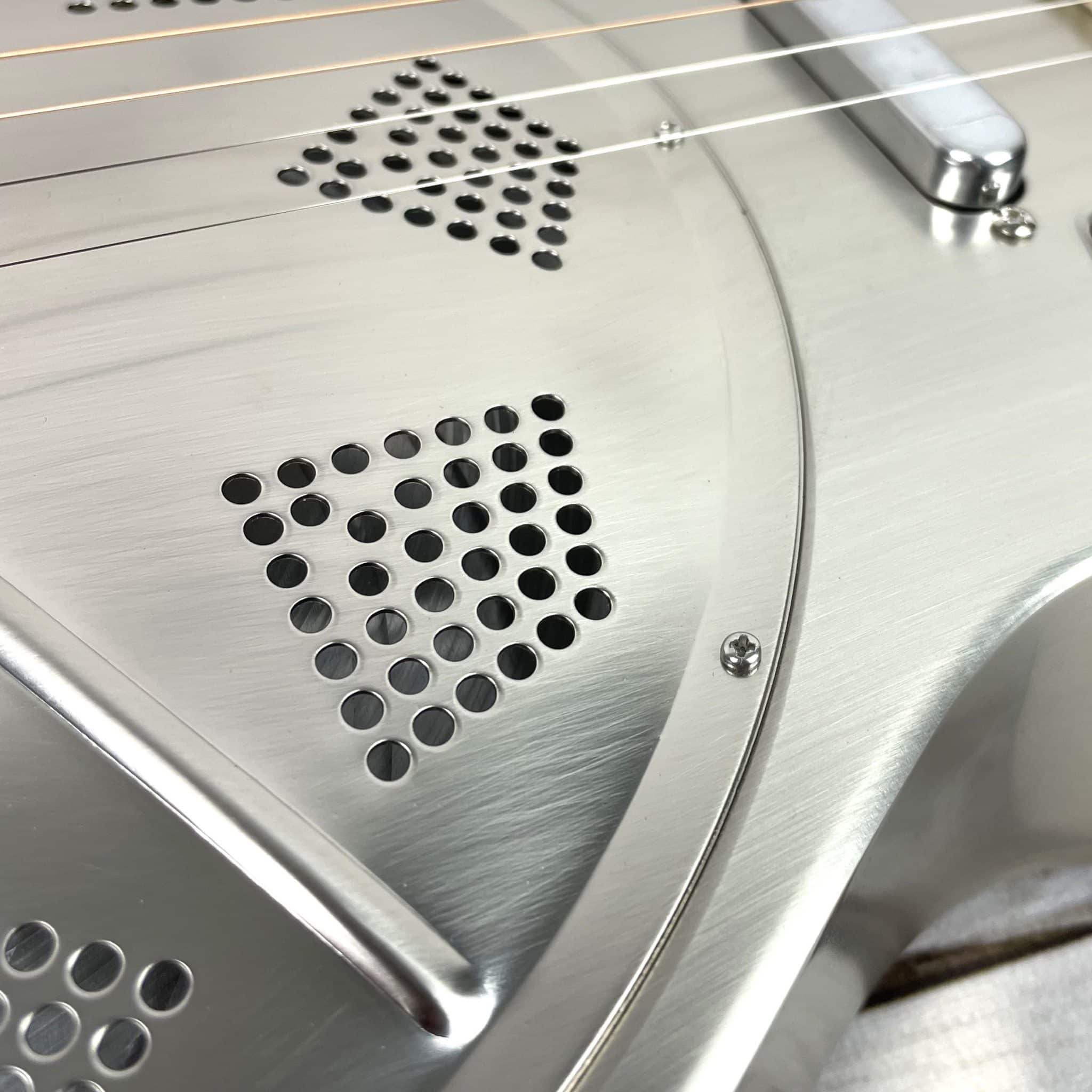 Royall Trifecta Light Aged Brushed Nickel 14 Fret Cutaway Brass Tricone With Pickup
