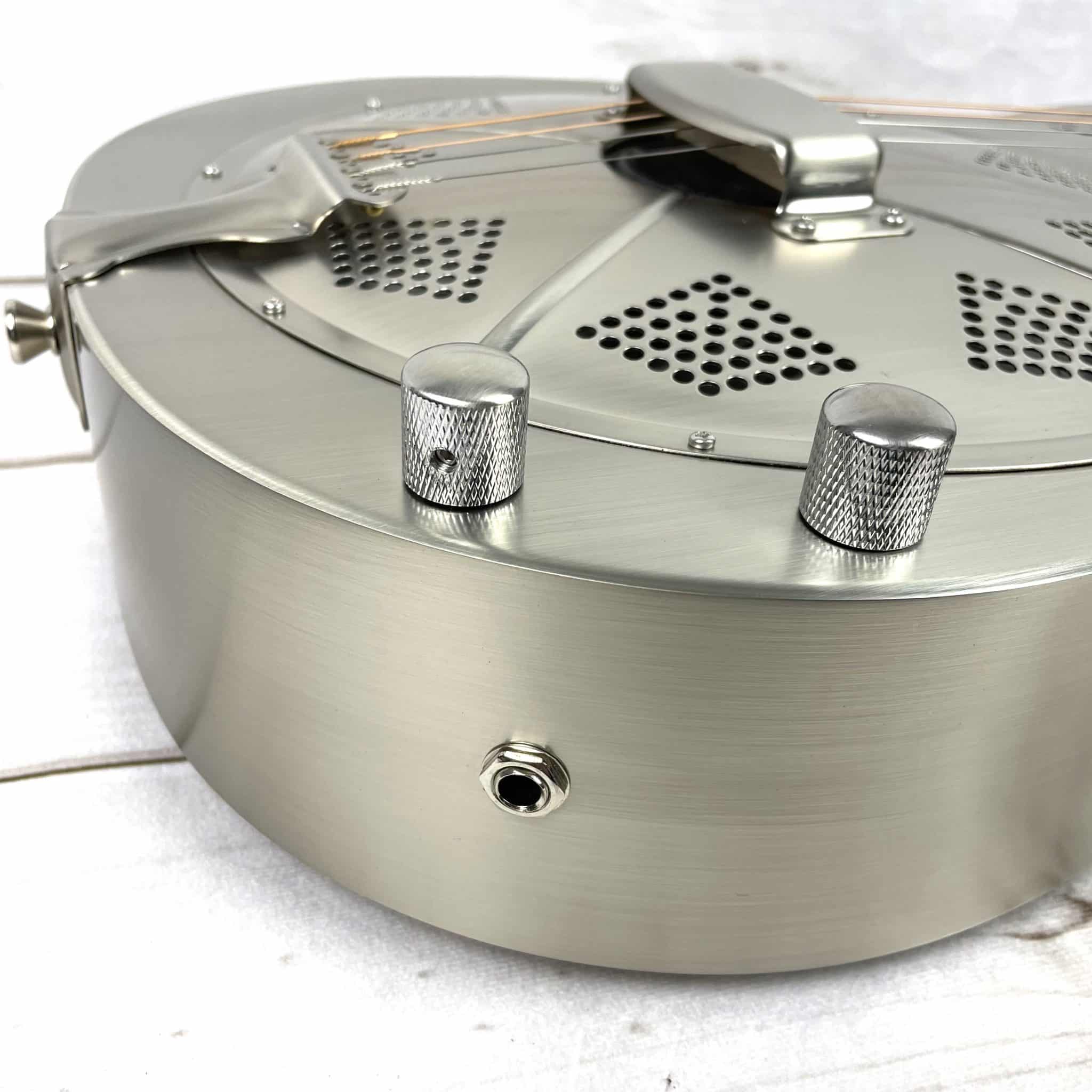 1 review for Royall Long Scale Parlor Tenor Single Cone Brass Body Resonator With Pickup Rough Brushed Steel Finish