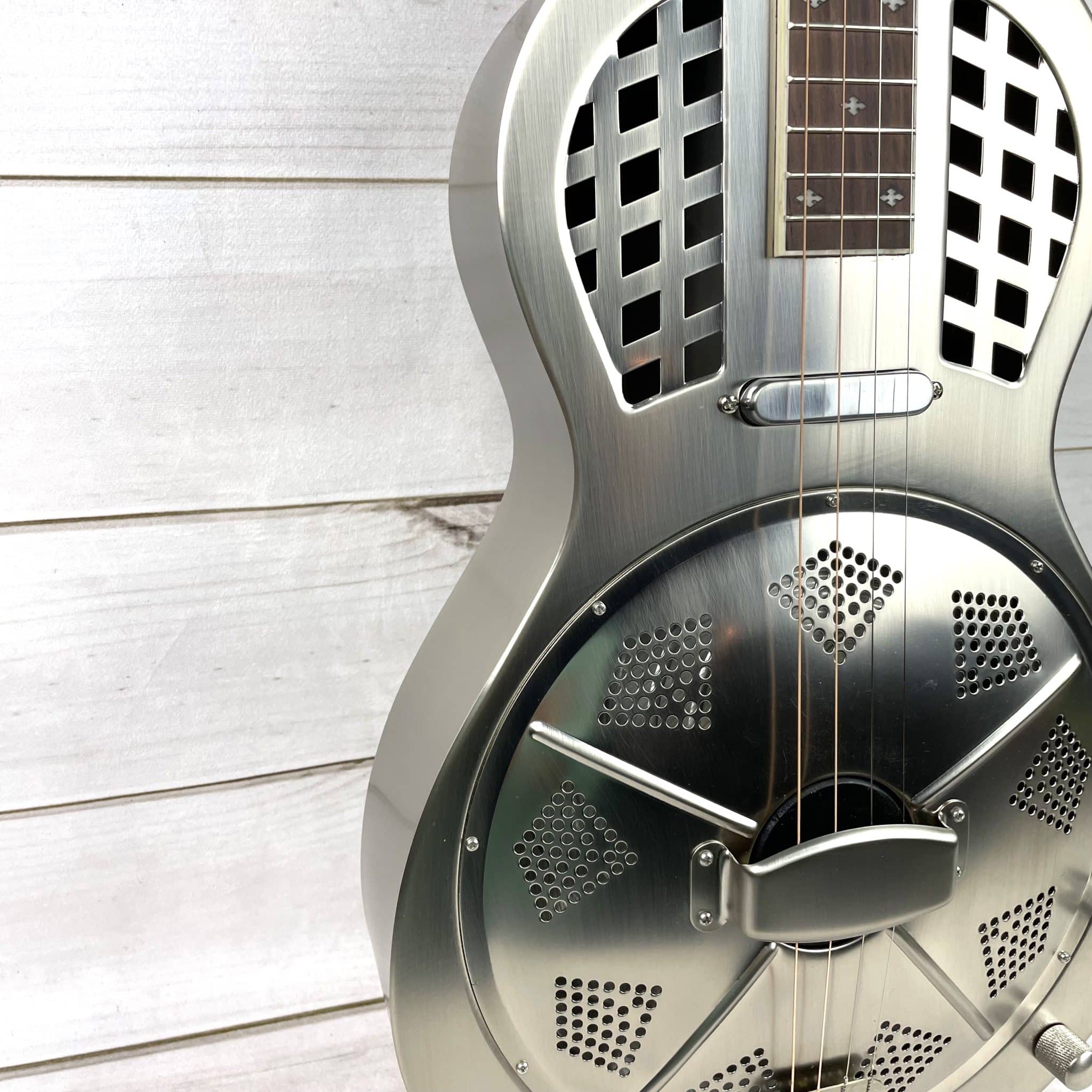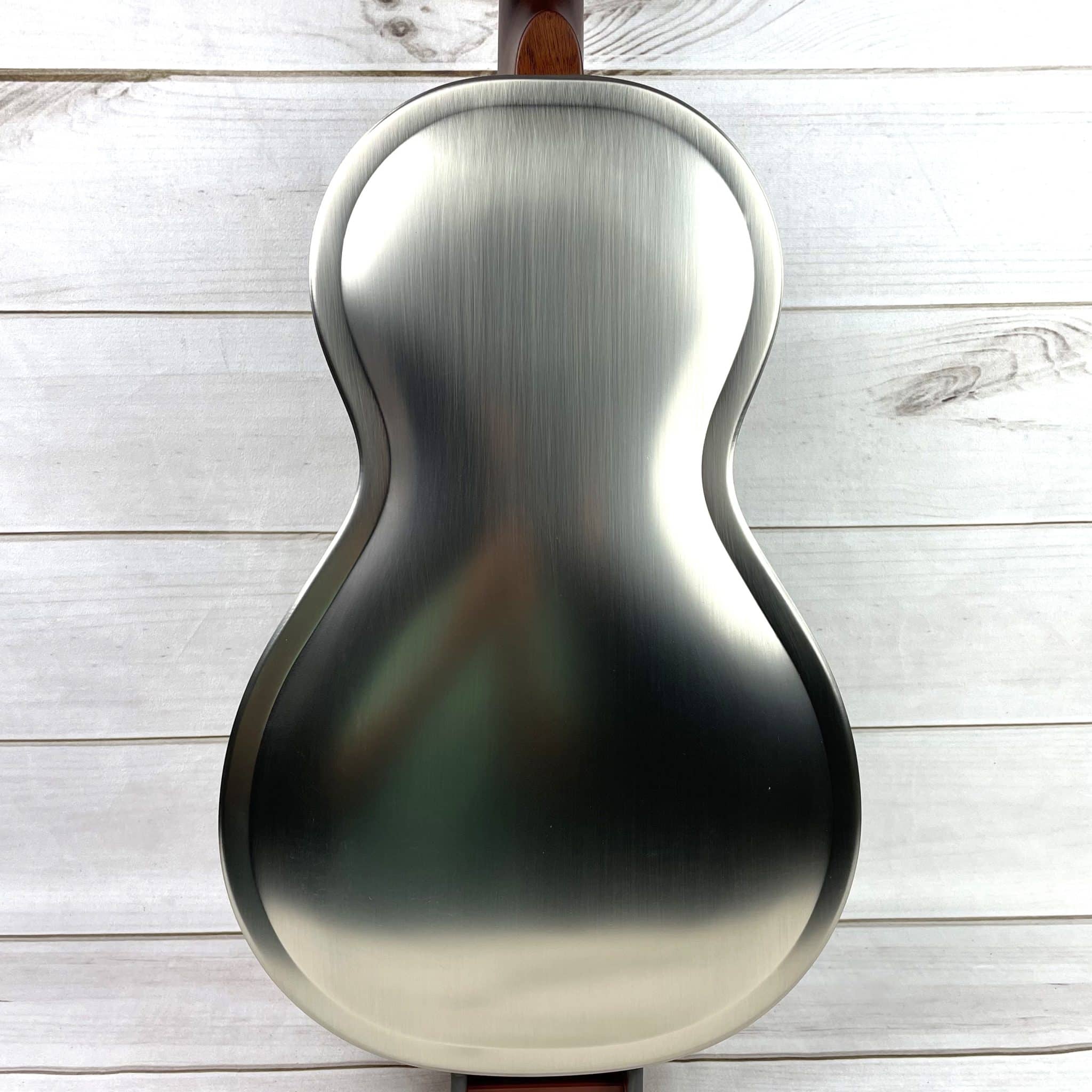 Royall Long Scale Parlor Tenor Single Cone Brass Body Resonator With Pickup Rough Brushed Steel Finish