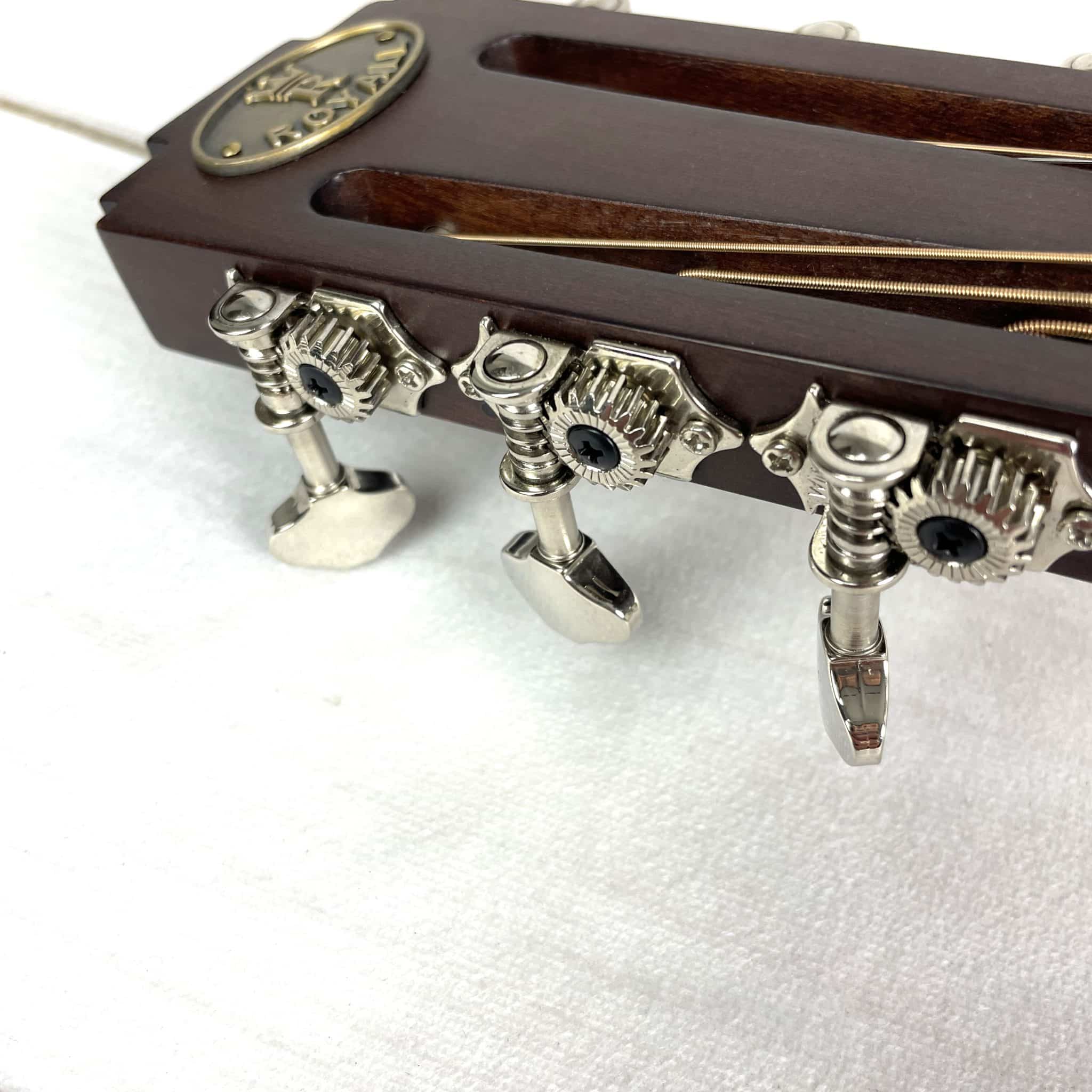 The Nickel Palmulator is our 14 fret totally tropical single cone bright nickel plated brass model.
