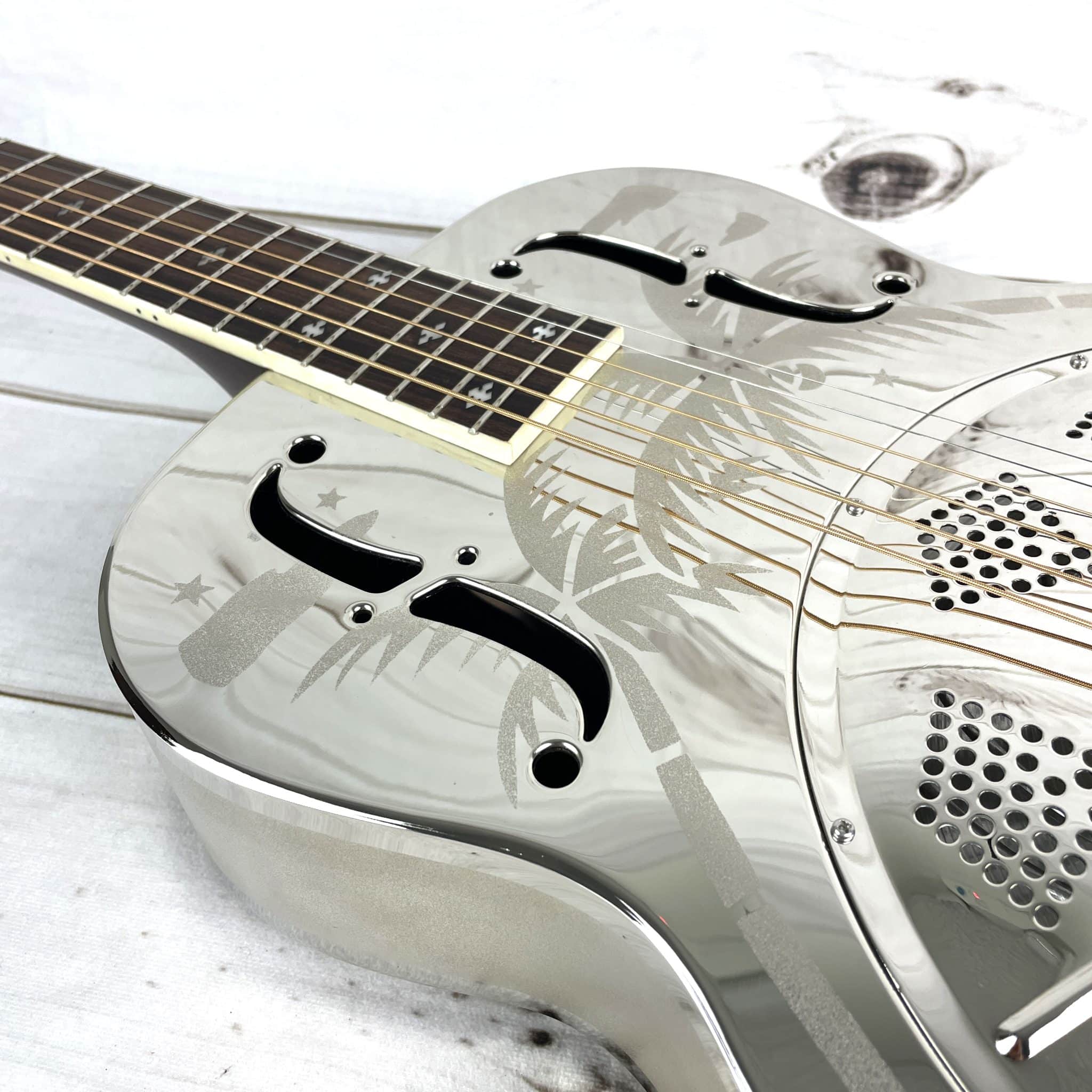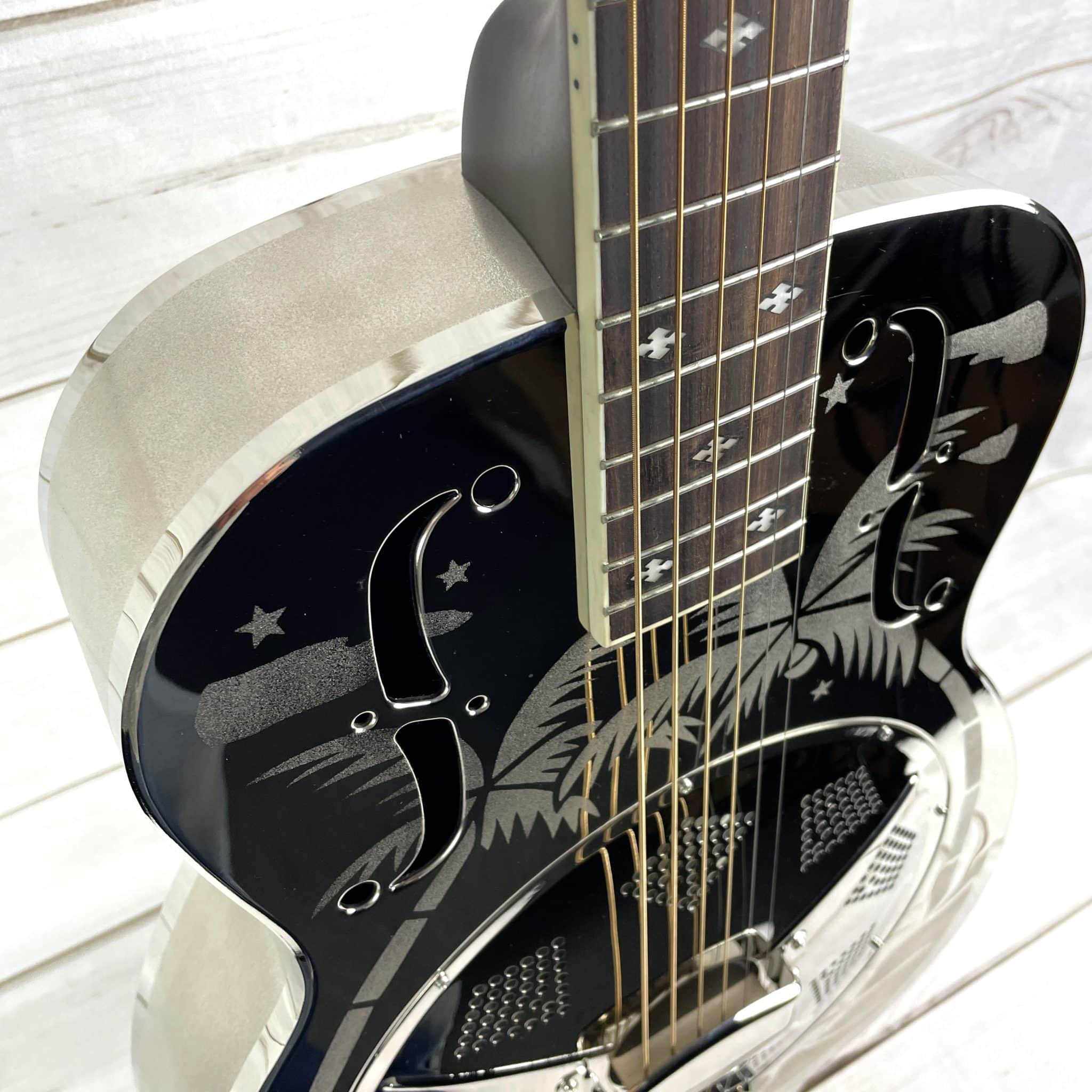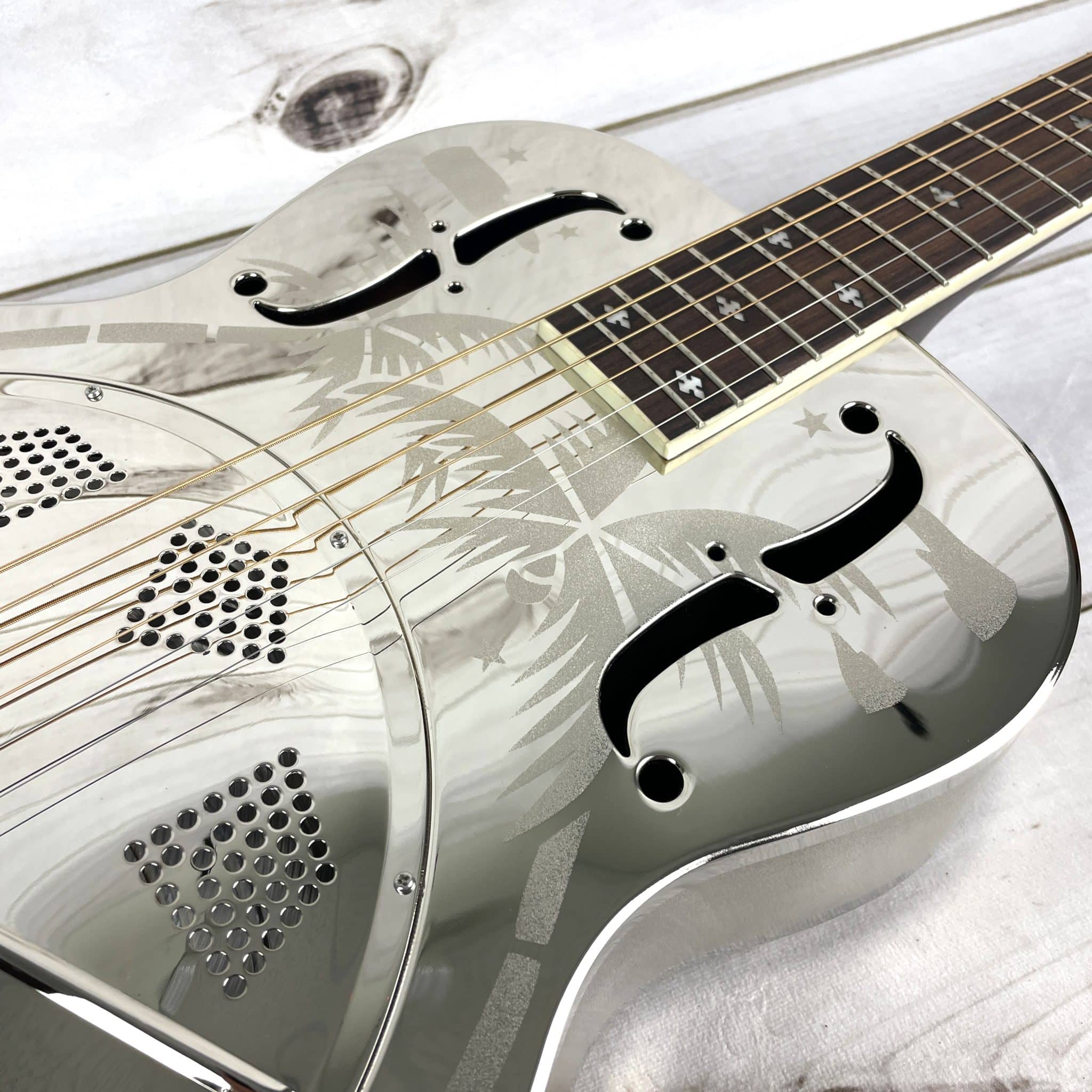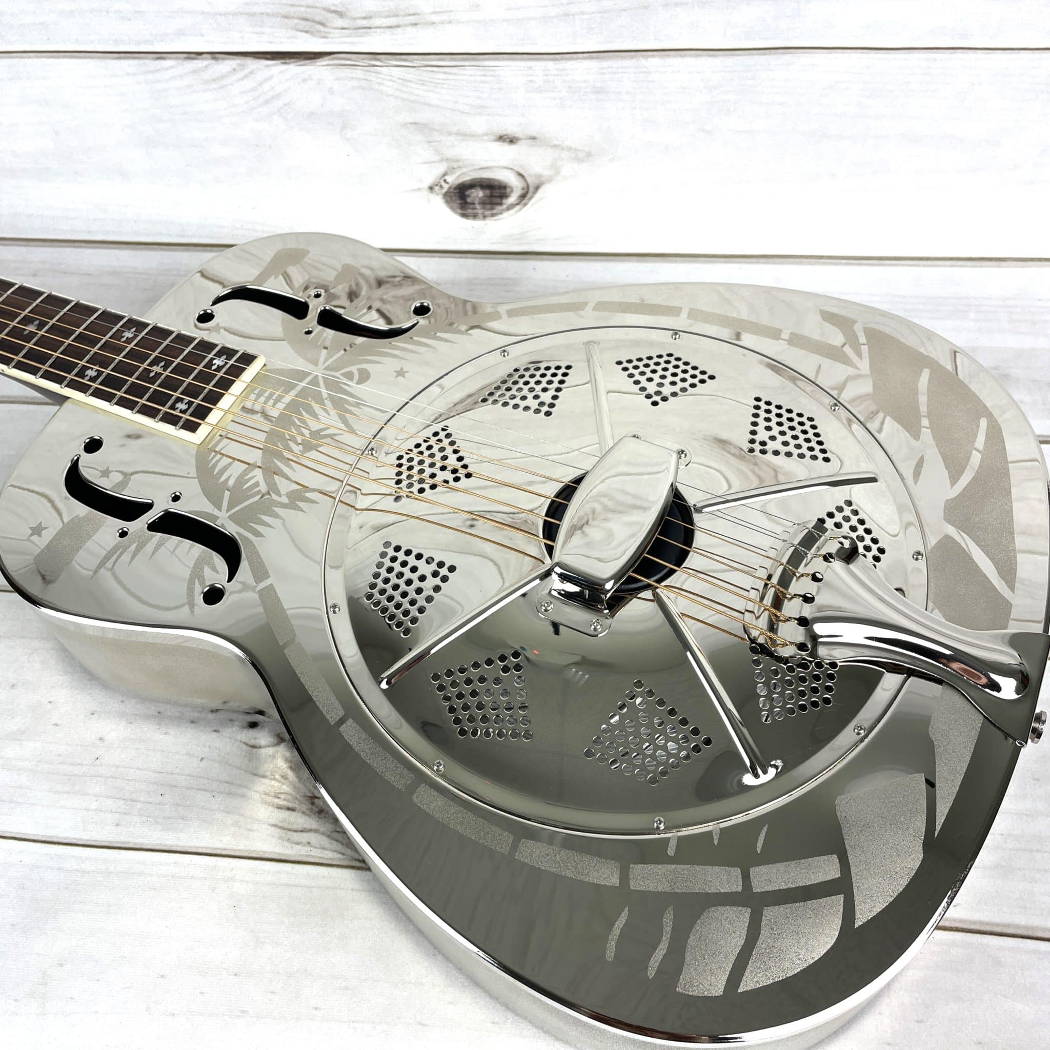 Royall Palmulator Bright Nickel Single Cone Resonator Guitar With Classic Etched Palm Scene