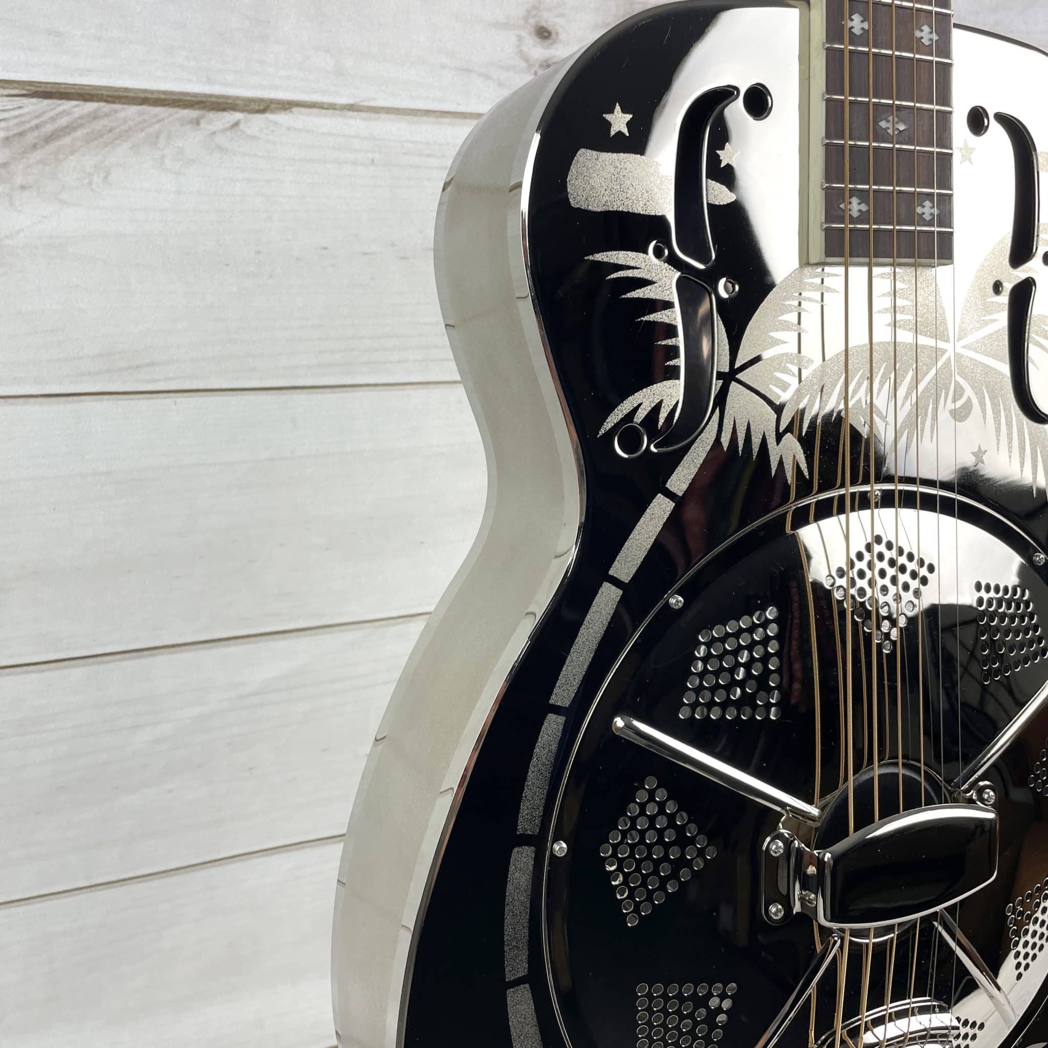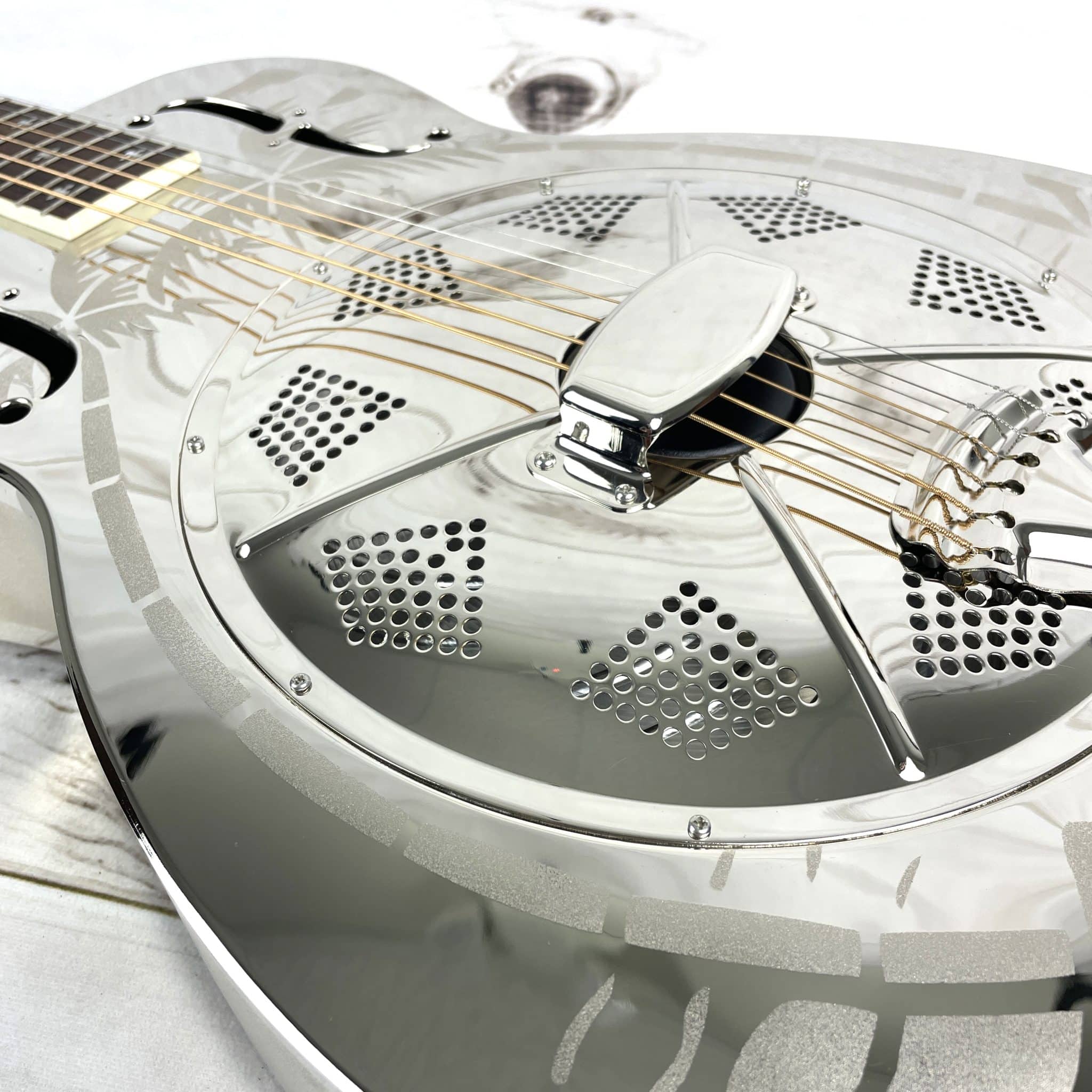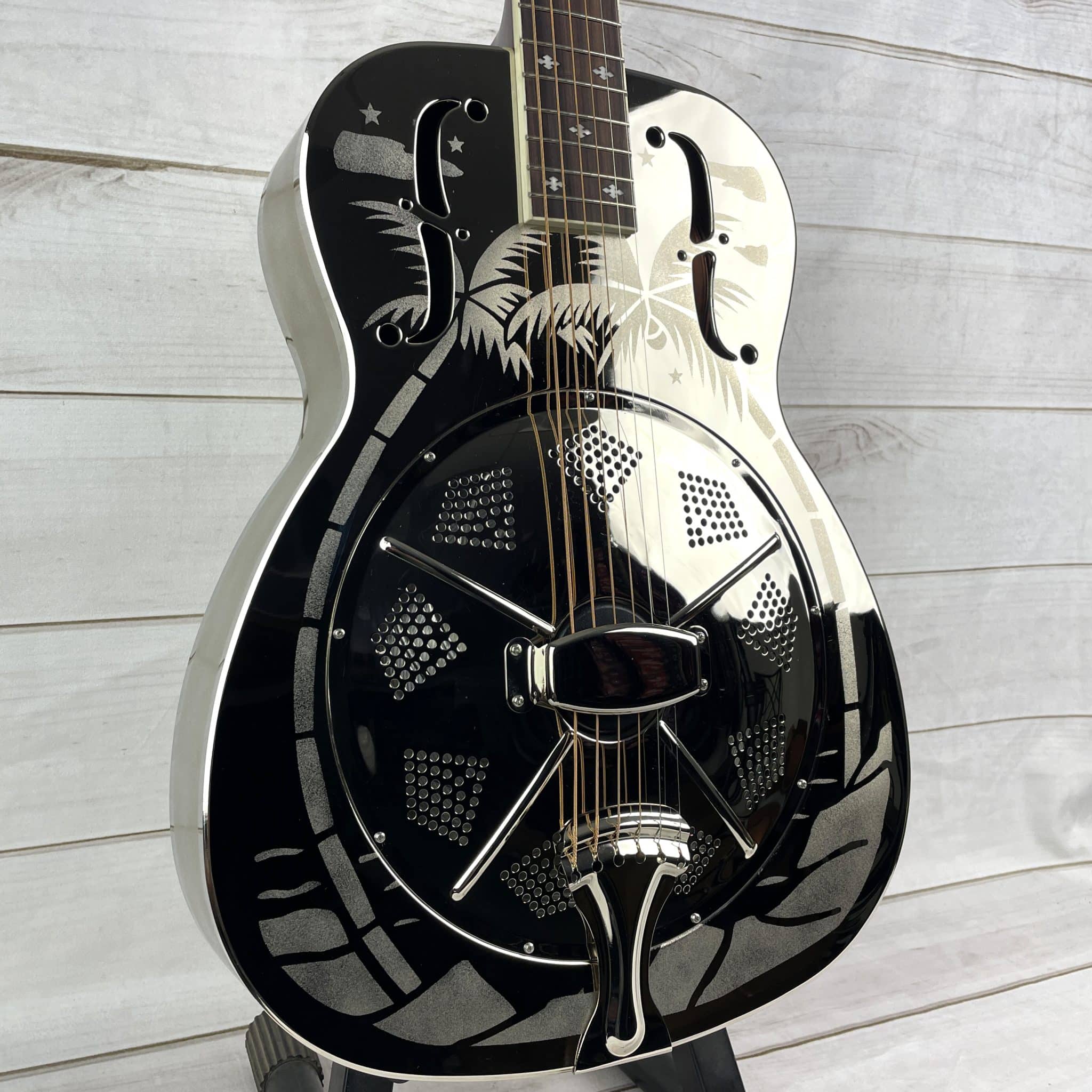 Royall Palmulator Bright Nickel Single Cone Resonator Guitar With Classic Etched Palm Scene