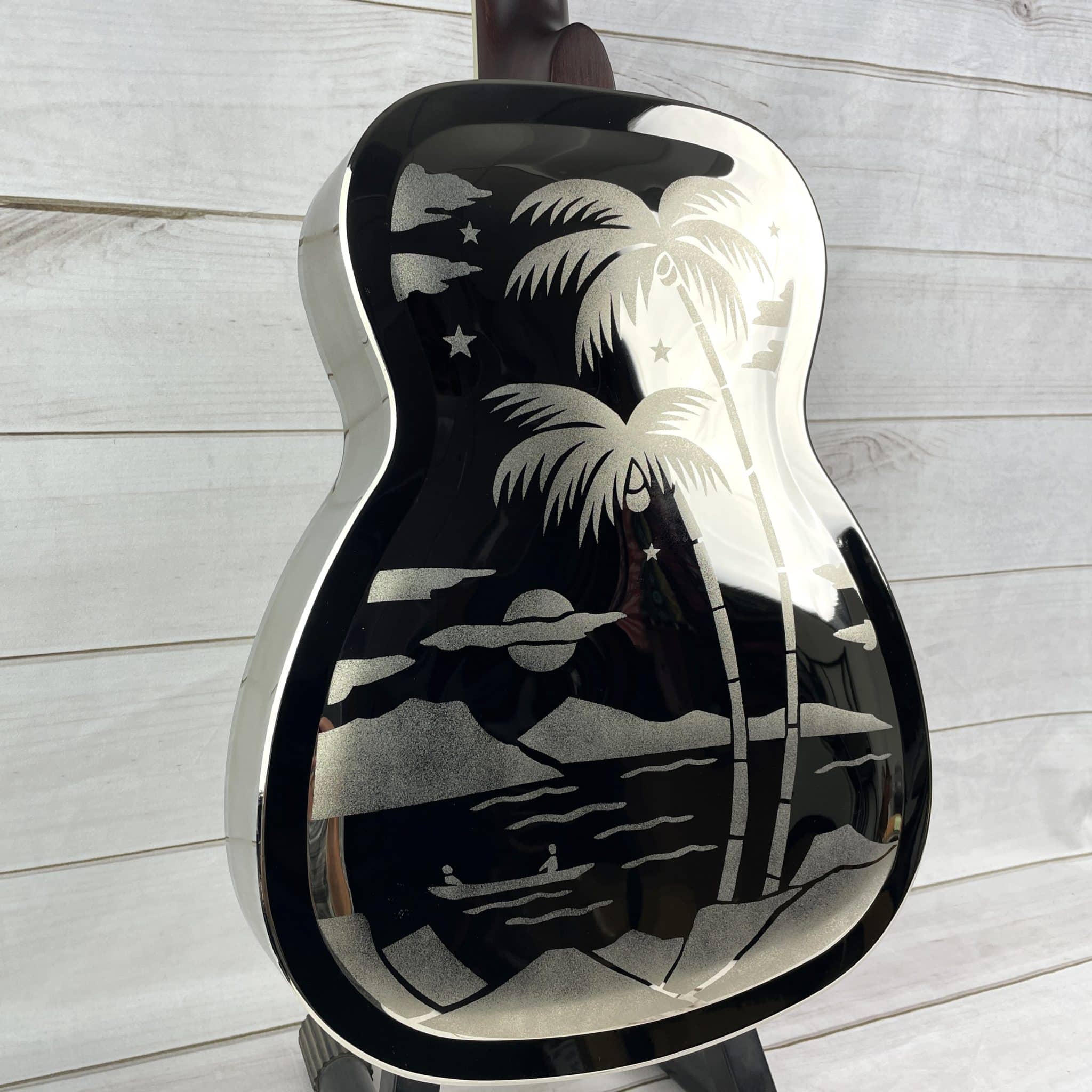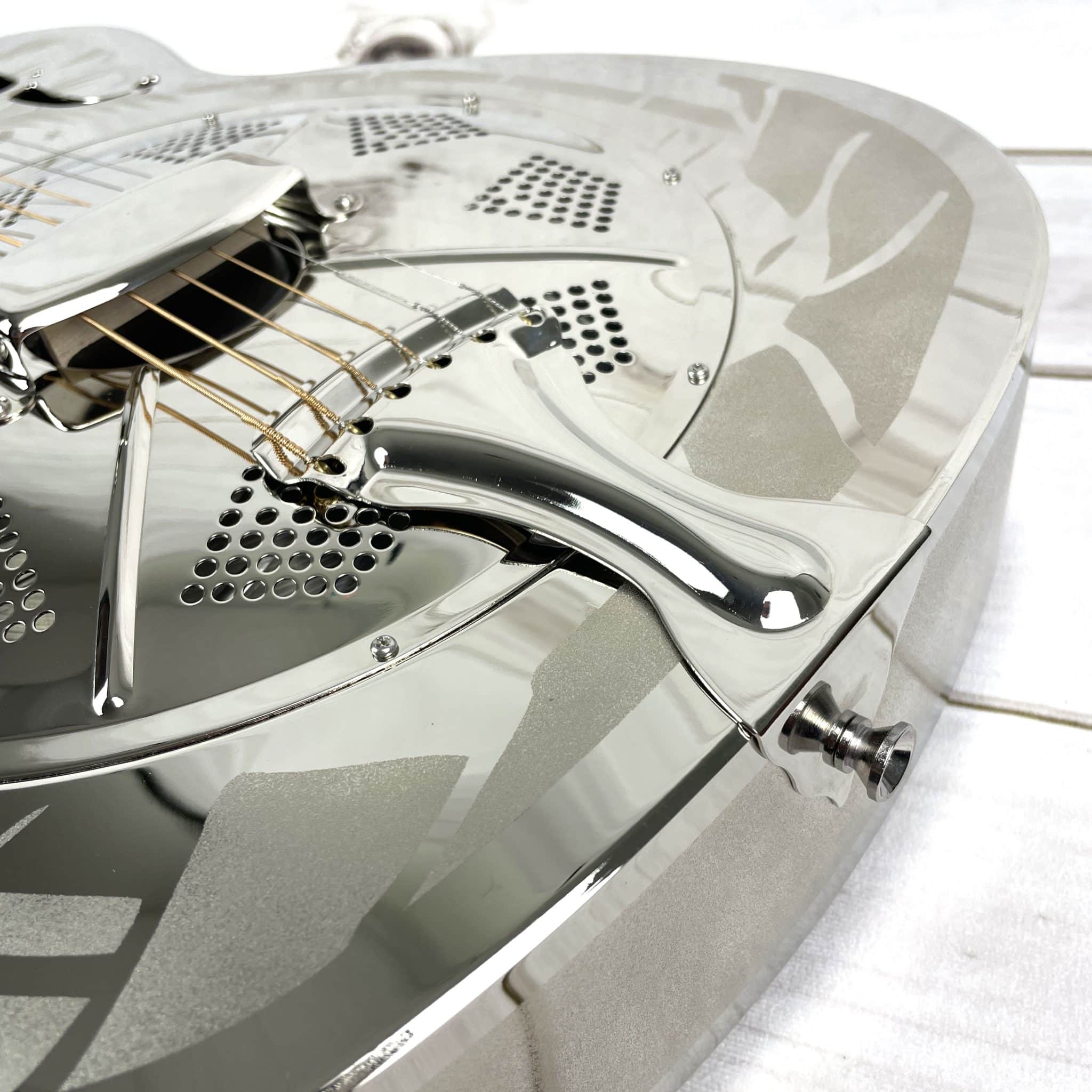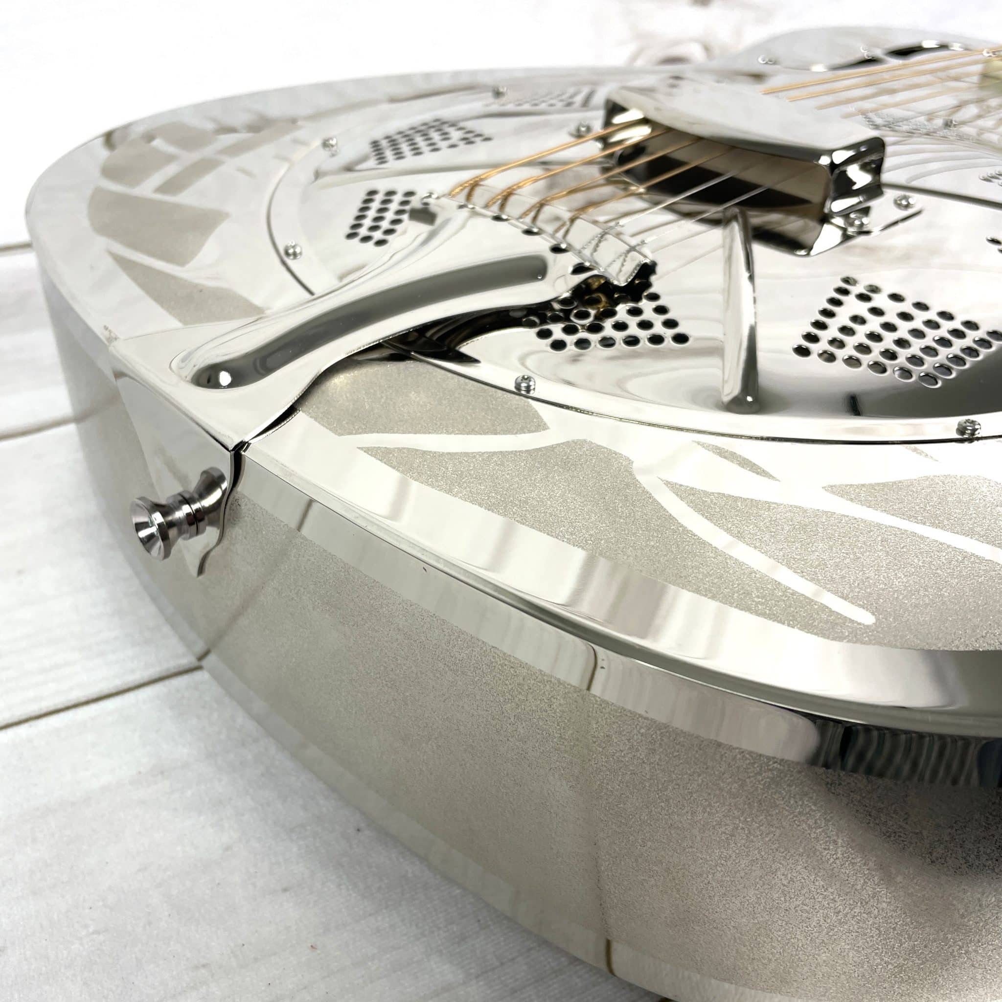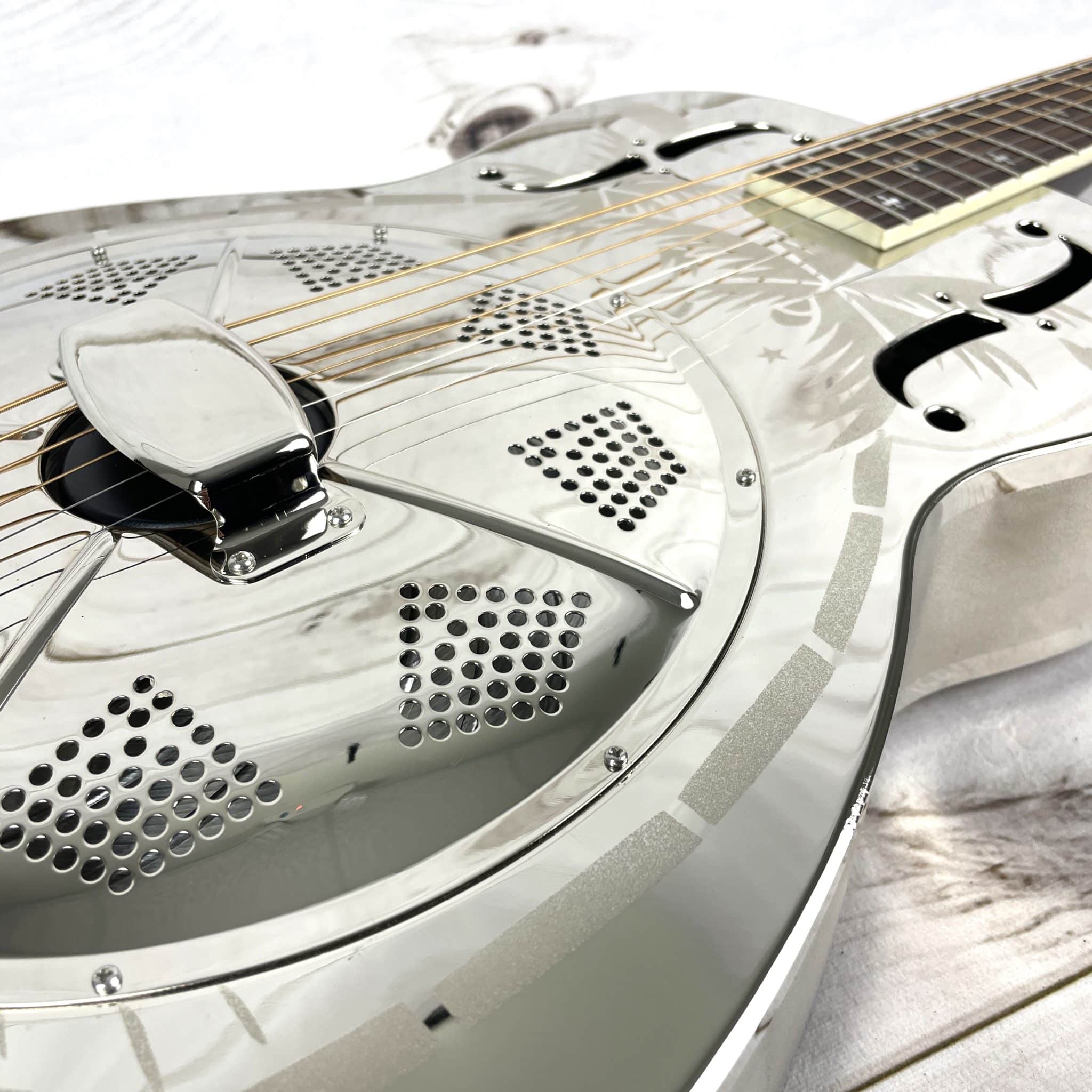 Royall Palmulator Bright Nickel Single Cone Resonator Guitar With Classic Etched Palm Scene