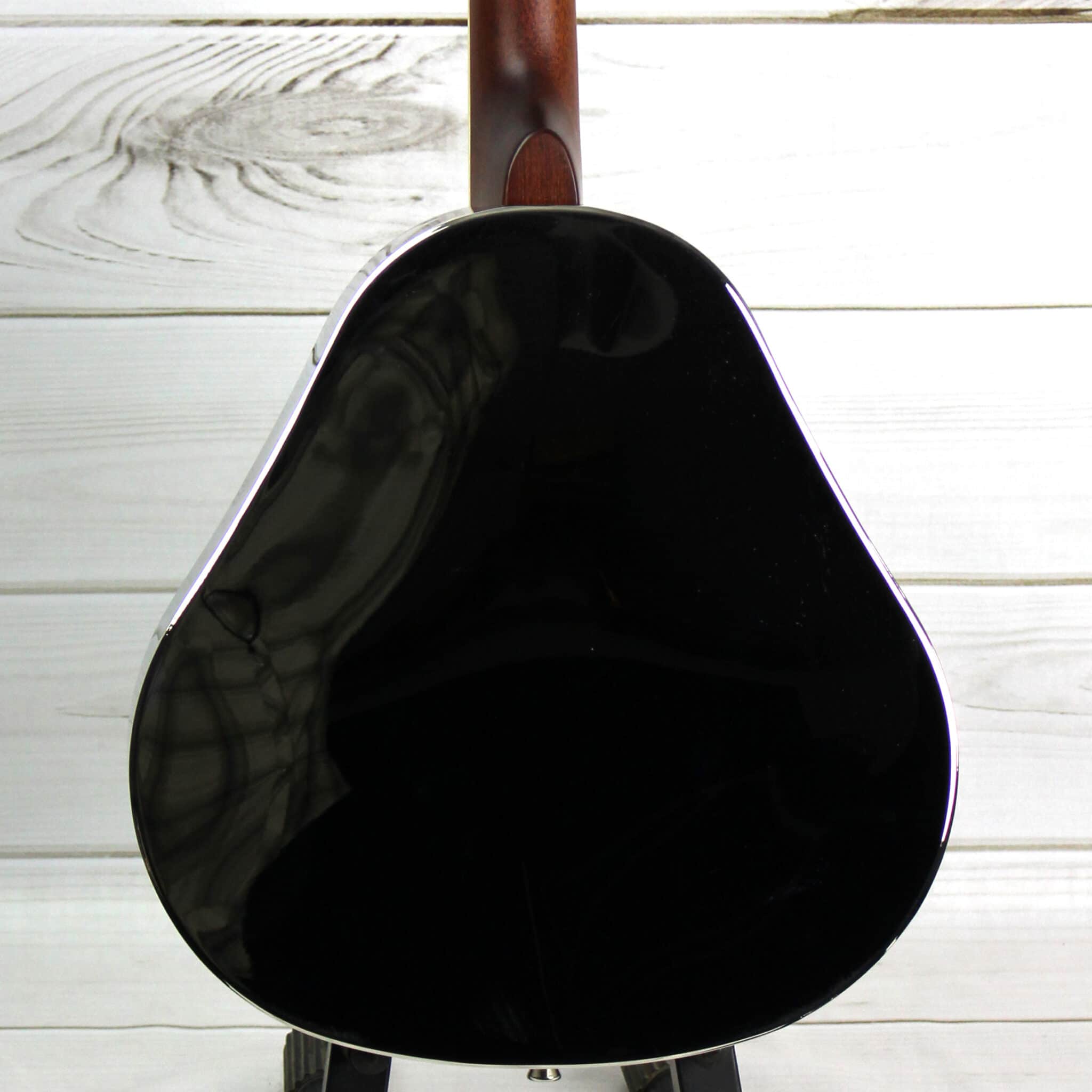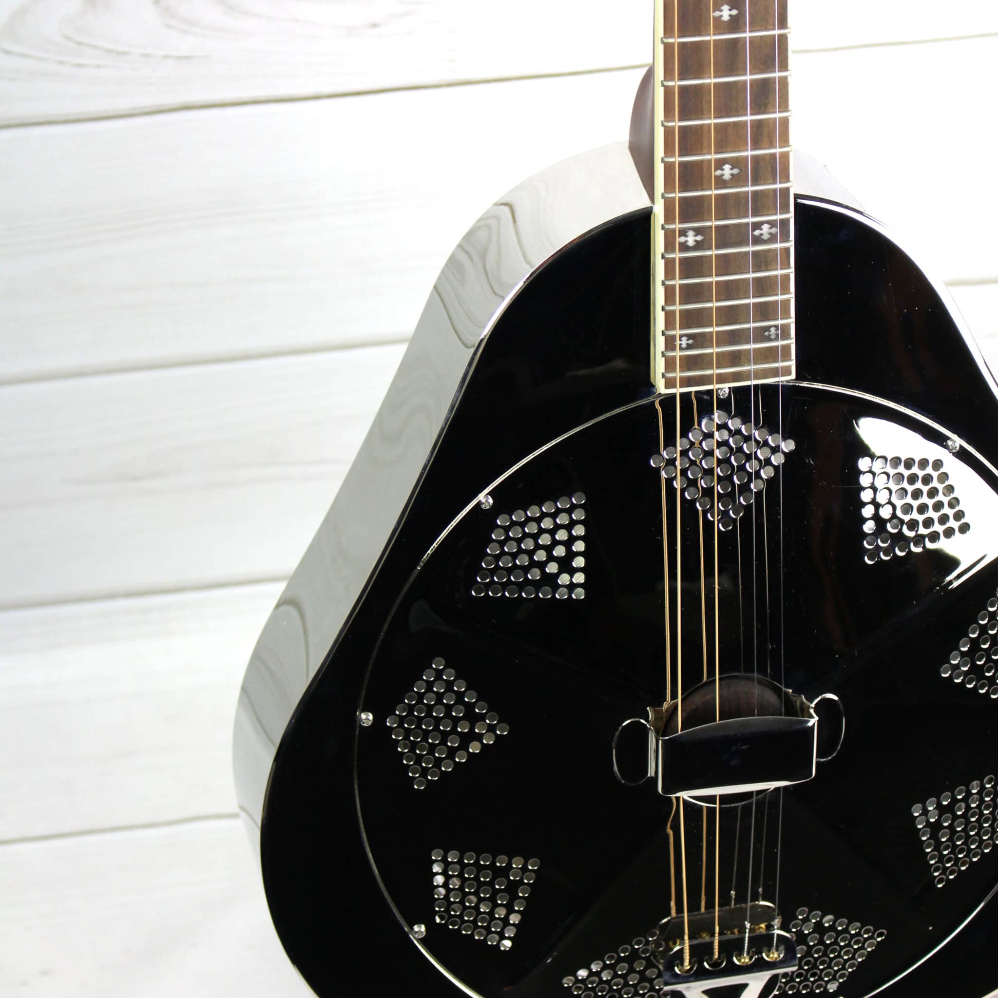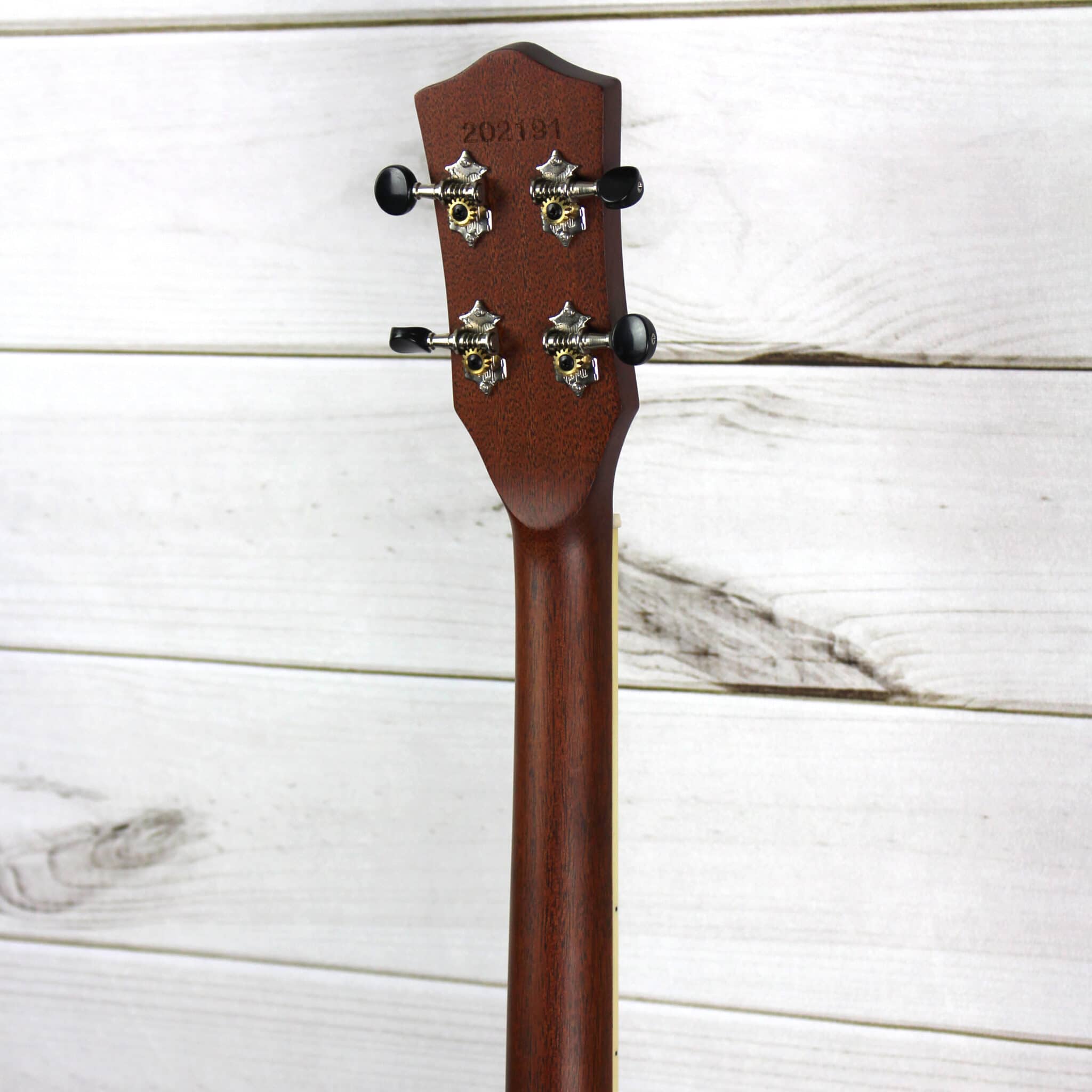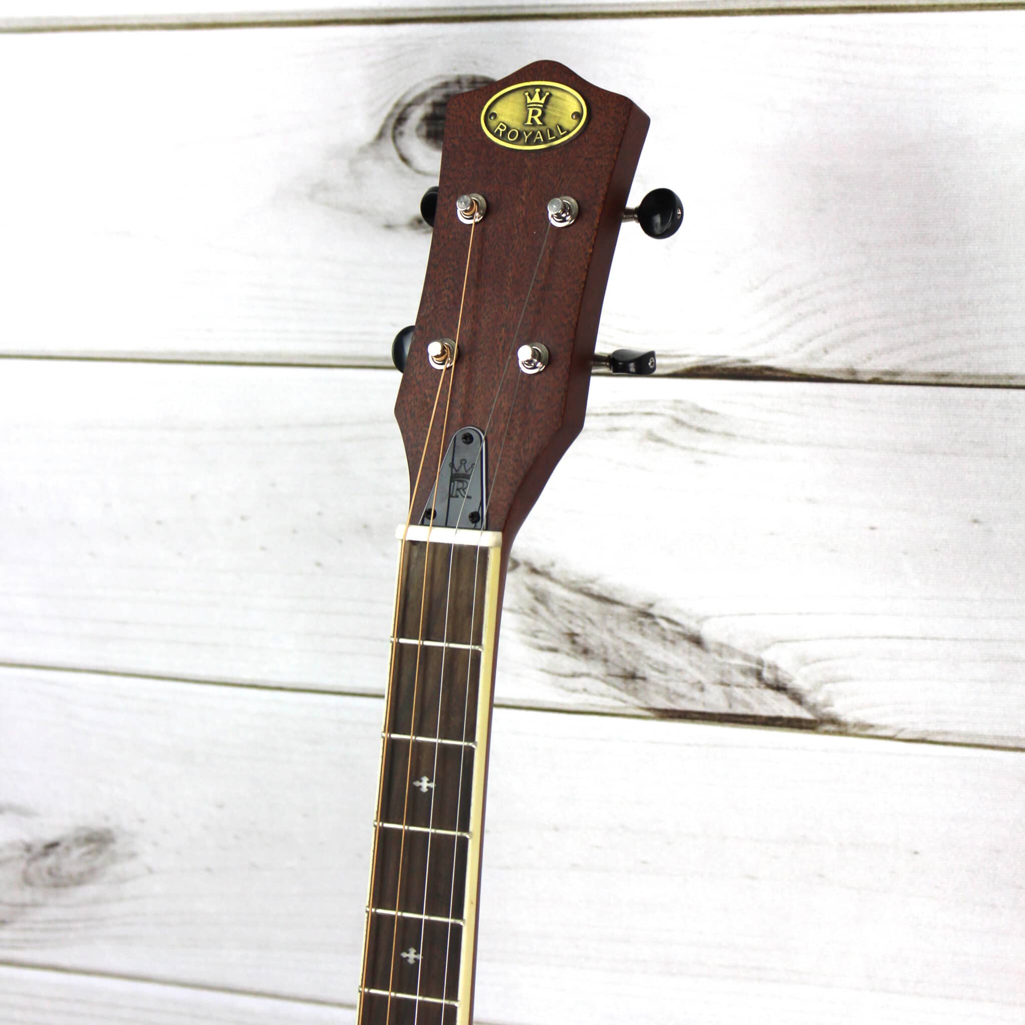 Well, here’s a new addition to the Royall Resonator family. We sometimes have conversations with people who have great ideas for new models for us. We decided to take a stab at this one because of a few persistent people who are pretty sure the world needs TENOR resonators. We’ll soon find out. We have discovered that this instrument sounds pretty great when tuned as an octave mandolin. All of our resonators go through a 20 point inspection by our skilled guitar techs before shipment. After inspection, and or adjustment, we double polish the frets, condition the fingerboard, stretch the strings, and tune to pitch. Giving you a wonderfully smooth action and playability right out of the box.
