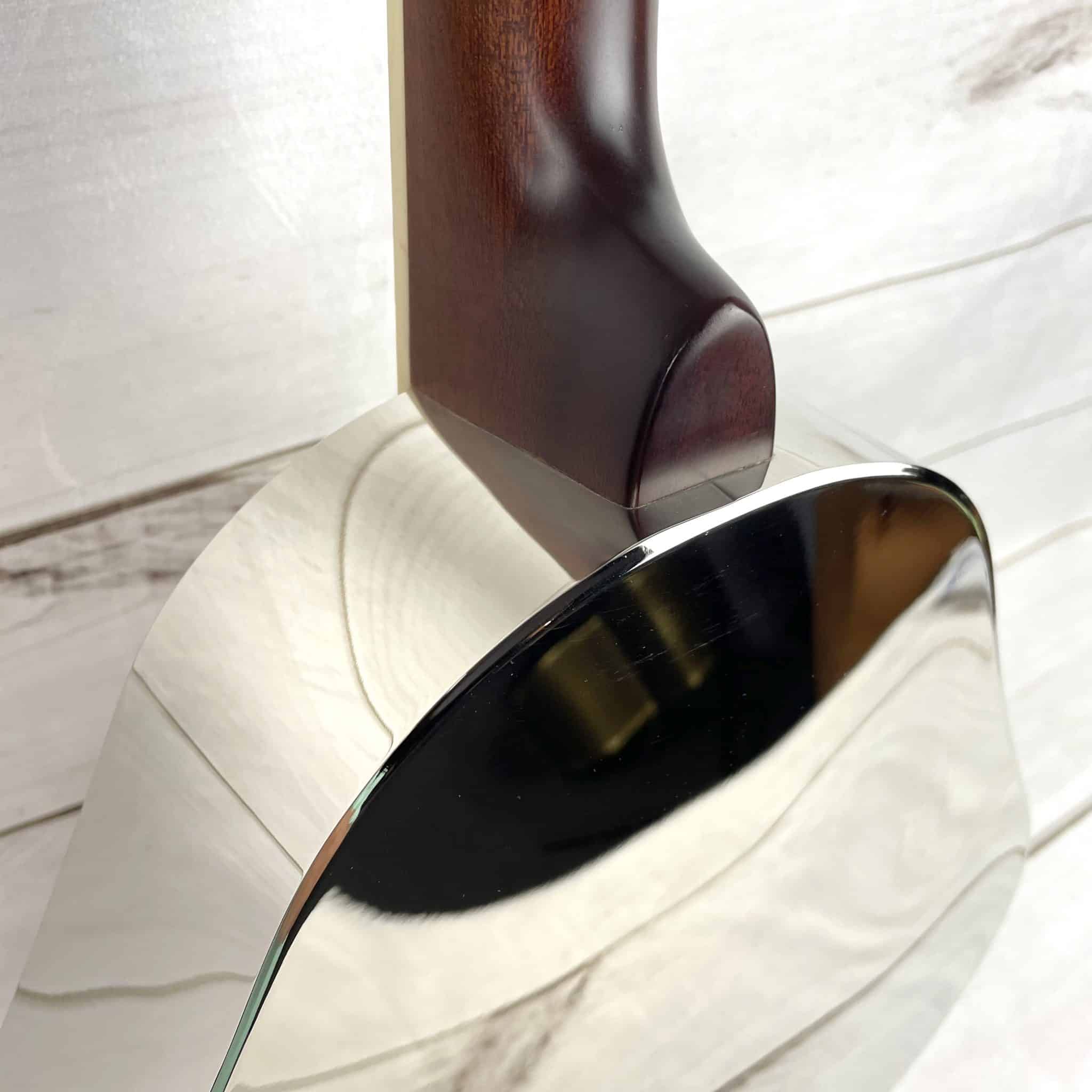 Well, here’s a new addition to the Royall Resonator family. We sometimes have conversations with people who have great ideas for new models for us. We decided to take a stab at this one because of a few persistent people who are pretty sure the world needs TENOR resonators. We’ll soon find out. We have discovered that this instrument sounds pretty great when tuned as an octave mandolin. All of our resonators go through a 20 point inspection by our skilled guitar techs before shipment. After inspection, and or adjustment, we double polish the frets, condition the fingerboard, stretch the strings, and tune to pitch. Giving you a wonderfully smooth action and playability right out of the box.