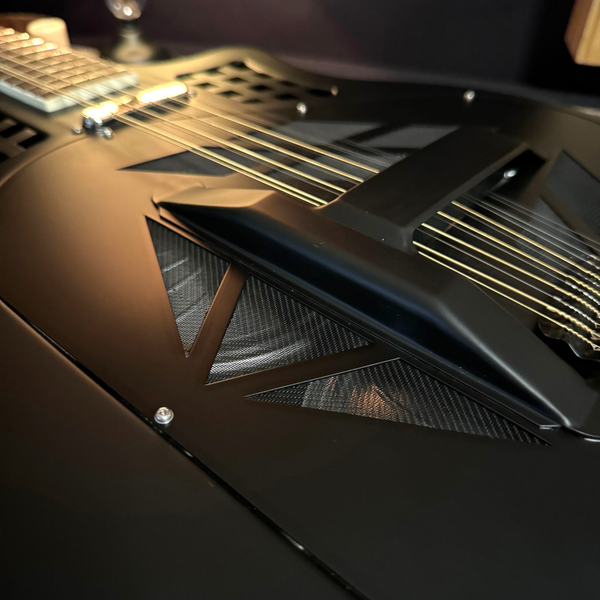 Be the first to review “Royall Trifecta Matte Charcoal Black 12 String Cutaway Tricone Resonator With Pickup” Cancel reply