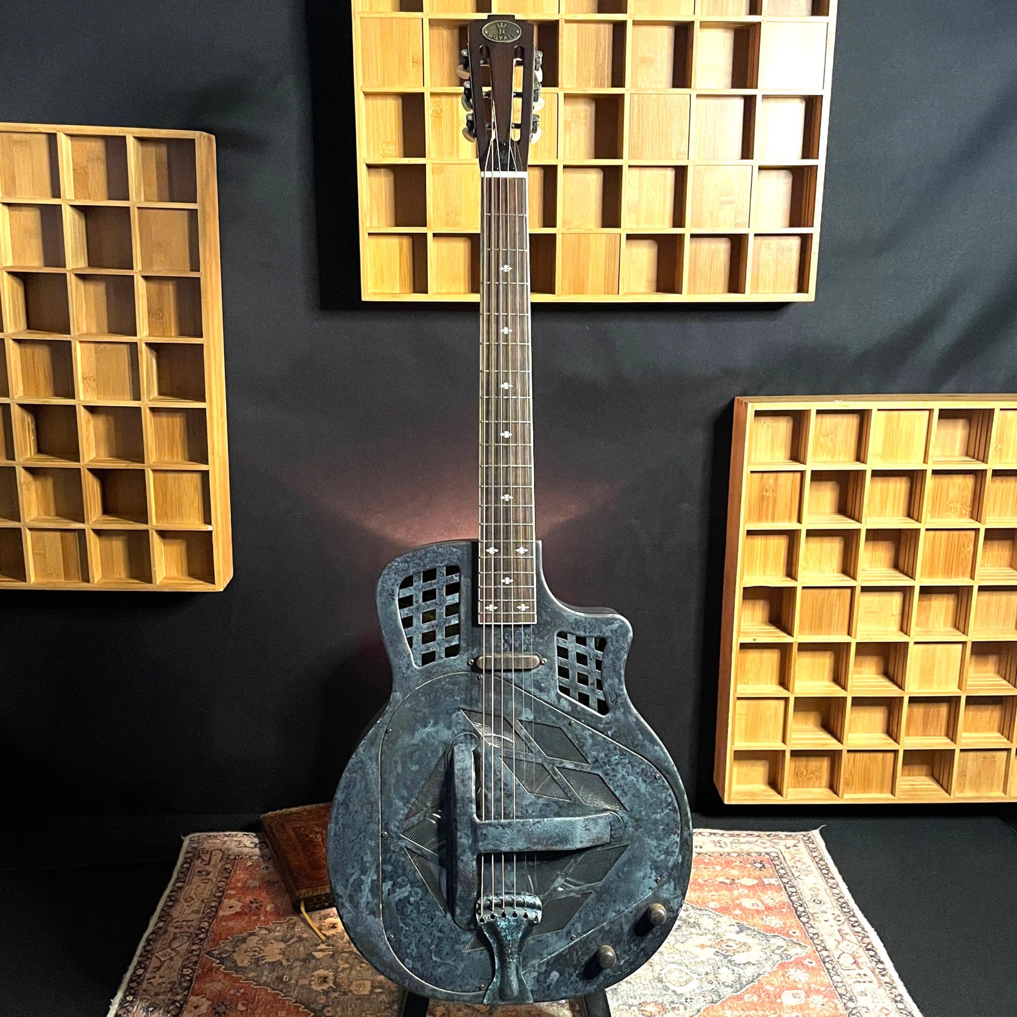 Be the first to review “Royall Trifecta Relic Distressed Brass 14 Fret Cutaway Brass Tricone With Pickup” Cancel reply